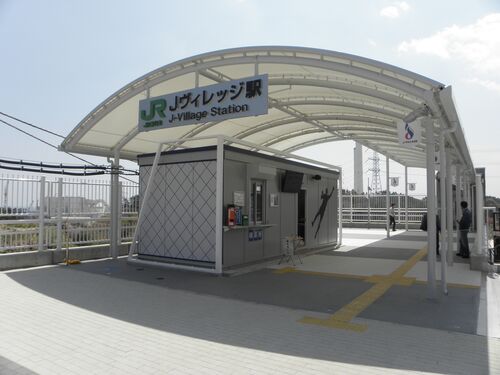 「Jヴィレッジ」は単式ホーム2面2線の駅であるが、ホームはどちらも複線の内側にあり上り方末端は繋がっている。 駅前 駅舎 情報ディスプレイ 駅舎西側から見下ろす 駅舎東側から見下ろす ホーム上り端で上り方を見る 振り返る 下り方へ進んで右の上りホ…