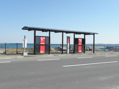 「小金沢」は訪れた2019年4月時点では一般道のBRT駅である。徒歩10分ほどで旧駅跡にアクセス出来て、駅舎は流失したがホーム・線路が震災当時のまま残っている。 下り方面のりばには待合室がある 上り方面乗り場:宮城交通バスの停留所名は「赤牛海岸」 上…
