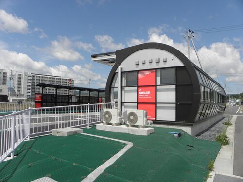 「南気仙沼」は2020年3月14日に専用道上に移転しました。上り乗り場側に駅舎があります。駅前ロータリーも整備されました。 駅名標 駅舎は移転前のBRT陸前高田駅にあったような蒲鉾タイプ 待合室 反対側の端面を見る 専用道を渡って反対側から見る 専用道上…