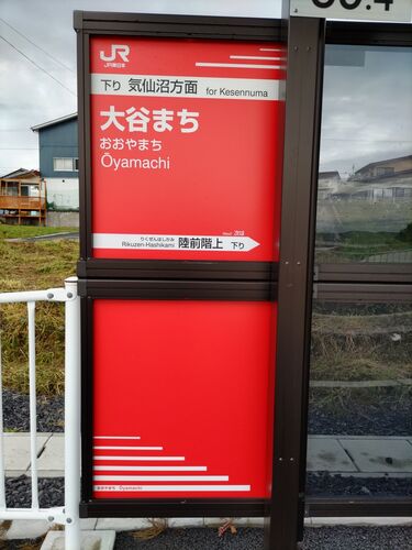 「大山まち」は専用道上にある。待合室・トイレはない。屋根付きの待合スペースは下り方面乗場を兼ねている。 下り乗り場を背面から見る 海側へ渡って下り方を見る 下り乗り場で上り方を見る 上り乗り場はスポールのみ 海岸に出てみた 上の画像の右寄りにズ…